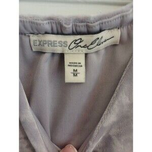 This gray velour cami from Express One Eleven is perfect for any occasion, whether it's a casual day out or a holiday party. The sleeveless top features a V-neckline and spaghetti straps, with a pullover closure for easy wear. Its solid pattern and velvet fabric type give it a luxurious look and feel, while the accents of straps add a touch of elegance.