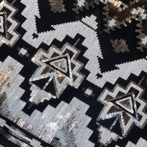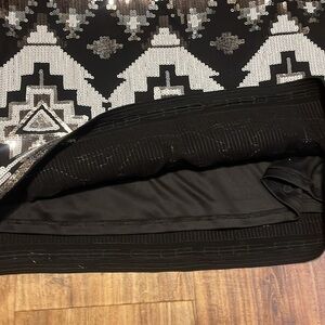 Express women’s large skirt mini sequin Black Silver Geometric stretch western