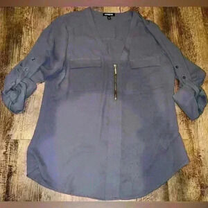 Express women’s long sleeve dark grey polyester half-zip dress shirt
