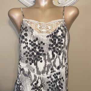 Express women’s medium 8 10 top blouse cami cream grey black macrame peplum