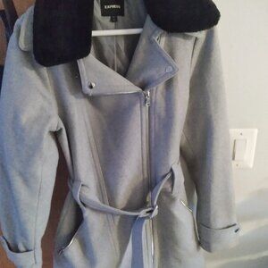 Express wool blend gray coat fur collar