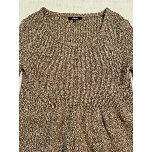 Express wool sweater women's large brown ruffle sleeve & hem crop minimalist