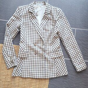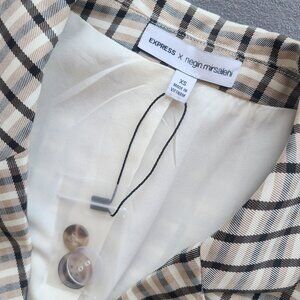 Express x Negin Mirsalehi Mixed Brown/Tan/Cream Checkered Plaid Print Boyfriend Blazer