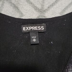 Express Black Sequin V Neck Crop Wide Sleeve Dressy Classy Chic Western Blouse.