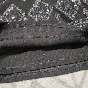 Sequins and black and the embroidery is a silver black metallic.