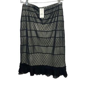 Express Black Sheer Lace Ruffle Peplum Pencil Skirt. Size Medium. Sheer Black lace overlays a tan slip lining. New with tags.