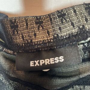 Express Black Sheer Lace Ruffle Peplum Pencil Skirt. Size Medium. Sheer Black lace overlays a tan slip lining. New with tags.
