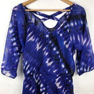 Express Black and Cobalt Tie Dye Chiffon Dress