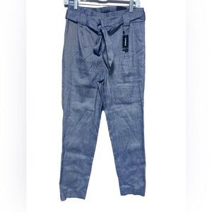 Express Blue Ankle High Rise Belted Linen Blend Pant NWT MSRP $79.98