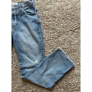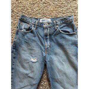Express Blue Distressed Worn-In Bootcut Jeans 5/6 Regular 100% Cotton Medium Was