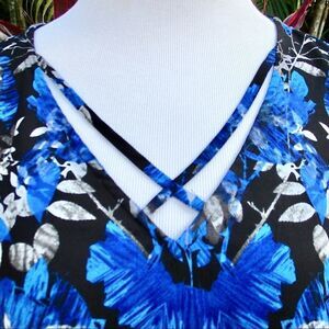 — Cobalt blue & black floral print tunic