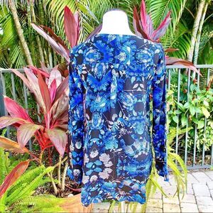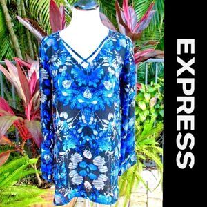 Express Blue Floral Tunic Blouse