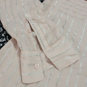 Express Blush Pink Shimmer Striped Business Dressy Loose Fit Flowy Blouse Tunic. Excellent condition. Very pretty color.
