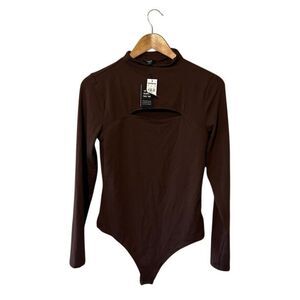Express Body Contour Cozy Mock Neck Brown Cutout thong Bodysuit Size Medium NWT