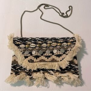 Express Boho Beaded Crossbody Envelope Bag Purse Fringe Seashells medallion
