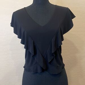 Express Brand Ruffle Detail V-Neck Black Crop Top size Small