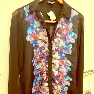 š„ExpressāButtonāfrontĀ floralāprintāblackāblouseāsizeā:āSmall