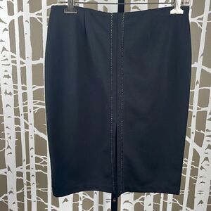 Express Center Split Hem Black Pencil Skirt size S. Features stretchy fabric with sexy splits down center in front and back, mesh trimmed stripes down front and and back center. Gently worn and laundered with no flaws to note. This skirt is sexy and comfy!
