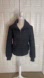 Charcoal Grey wool bomber jacket by Express. Zipper closure, oversized collar, sweater material at waist, cuffs and collar. Zipper pockets. Cropped fit. 51% wool blend with polyester, acrylic and nylon. Medium to medium-heavier weight; crisp sturdy high quality construction. Very clean looking; minimalist; monochromatic, low key cool. Measurements in pictures.