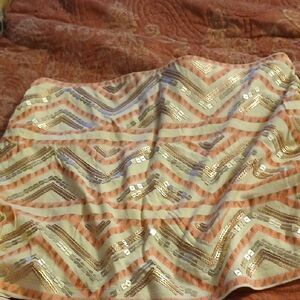 Elevate your style with this chic chevron patterned skirt. Featuring a blend of cream and gold, this skirt is perfect for any occasion. Pair it with your favorite top for a stunning look. C-5