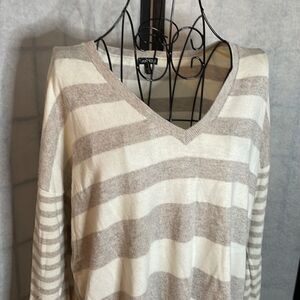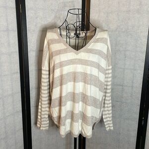 V neck Long sleeve Lightweight Great condition Cream and tan color Loose fit
