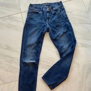 Fabulous Express mid rise cropped Leggings. You can roll them up for another look. Has distressed torn knee.