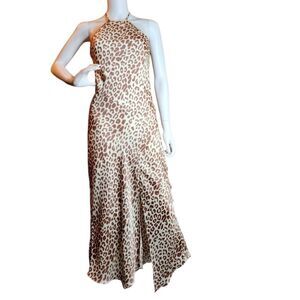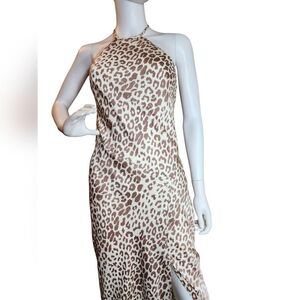 Embrace your wild side with this stunning leopard print halter maxi dress. Perfect for any occasion, this dress combines elegance with a touch of adventure. The tan and brown hues create a striking look that is sure to turn heads.