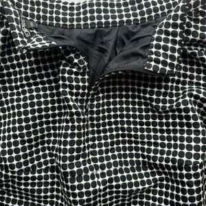 This Express fit and flare skirt in size 6 is the perfect addition to any wardrobe. The black polka dot pattern adds a touch of fun to this versatile piece, which can be dressed up or down for any occasion. The skirt features a zip closure and is made of a comfortable blend of polyester and rayon, with a lining for added comfort. The midi length and flare style make this skirt a must-have for any fashion-forward woman, while the accents and features, such as the zipper, add a touch of uniqueness. This skirt is perfect for summer, fall, and spring, and can be worn to parties, cocktail events, or casual outings.