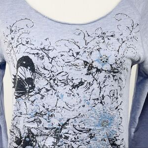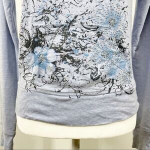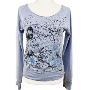 Express Floral Embellished Boatneck Sweatshirt Blue Silver Medium