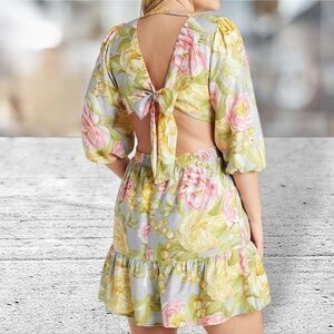 Express Floral Tie Back 3/4 Sleeve Dress