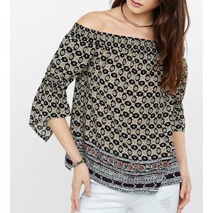 Express Foulard Print Off Shoulder Shirt