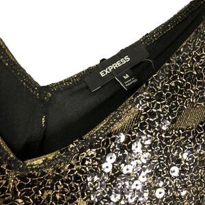 Express Fully Sequined Mini Dress Black and Gold V Neck