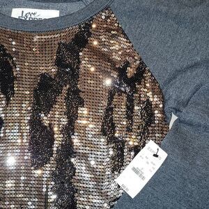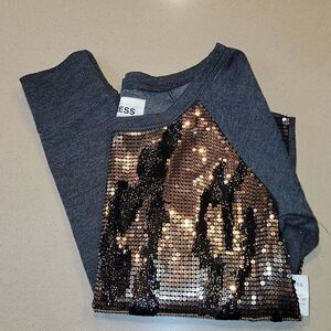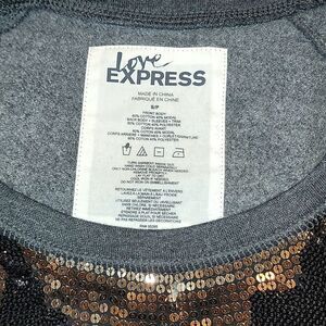 Express Gray Sweatshirt with Black/Gold Sequins Detail