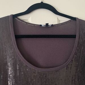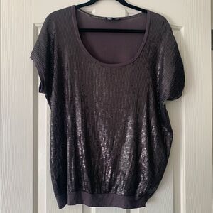 Fun gray scoop neck tee from Express covered in sequins (with a plain solid back)