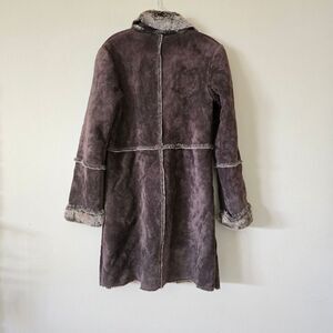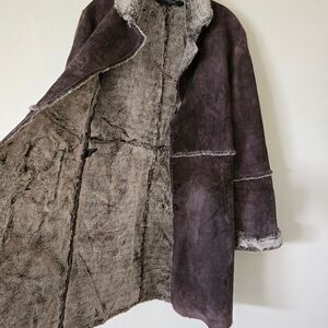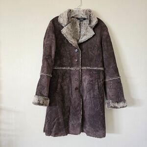 Express Leather Patchwork Faux Sherpa lined Penny Lane long coat Size M Y2K Vtg