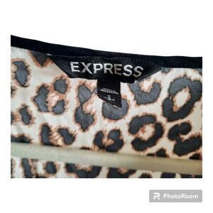 Express Leopard Print Silky Satin Short Cuffed Sleeve Top