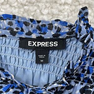 Express Leopard Print Smocked Balloon Sleeve Bllouse/Top. Very Good condition. No stains or holes. Shorter fitting tee, slim fit.
