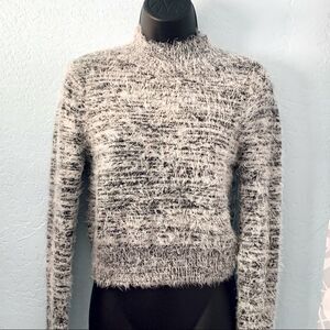 Cute pullover mock neck fuzzy sweater. Colors of black & white. Cropped. Nylon/acrylic/wool blend fabric. Has lots of stretch to it. In excellent condition. NWOT never worn. Express Size XS