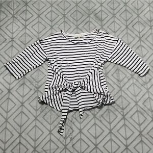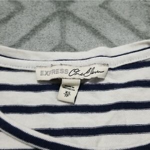 Express Navy Blue & White Striped Crew Neck Sailor Boho Chic Knot Waist Blouse