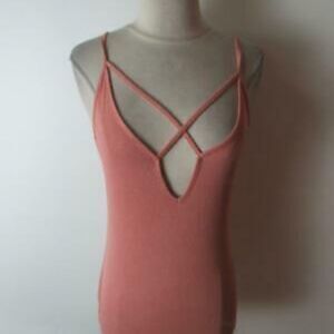 Softly form-fitting, ribbed fabric means this cami moves sweetly with you. A strappy, v-neck detail over the decolletage makes it an airy - and totally sexy - spin on cut-out style.