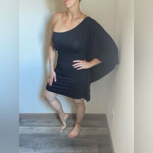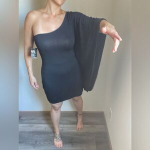 Express Dolman Dress Black One Shoulder Bodycon Flowy Sleeve NEW