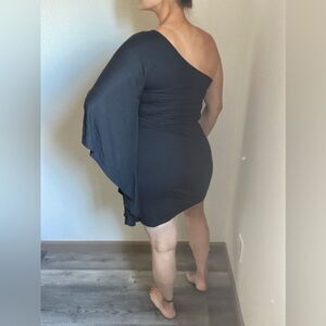 Express One Shoulder Dress Bodycon Dolman Sleeve Black Medium Classic