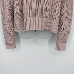 Express Pink Chunky Knit Fisherman Sweater Large Balloon Sleeve Ribbed Boho Cozy