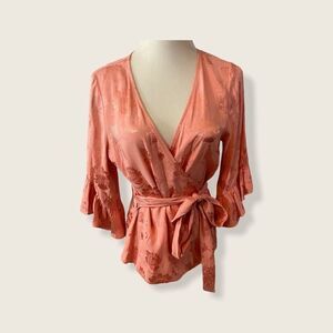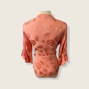 Express Pink Floral Bell Sleeve Wrap Blouse Size S/P
