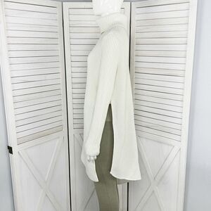 Express Ribbed Asymmetrical Hem Split Side Long Sweater Cream Large Turtle Neck