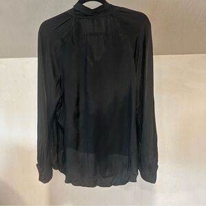 Express Satin Tie Neck Work Shirt Blouse Blouson Sleeve Top