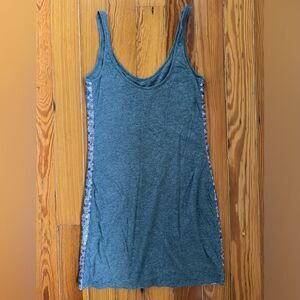 Lightly worn. Silver sequins on the front. Tshirt material in back. Comfortable fit. Size XS
