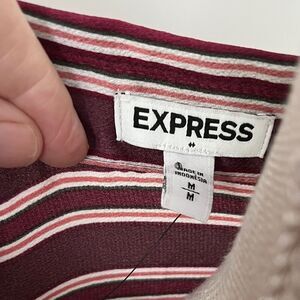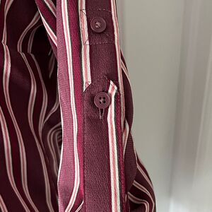 Express Shades of Burgundy ,Pink &White Striped Button Up Roll Tab Sleeves SZ M