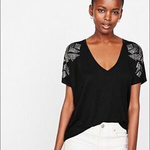 ✨ Express Short Dolman Studded Sleeve V Neck Top✨