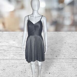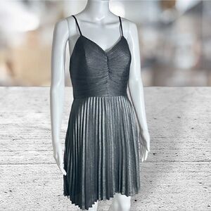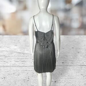 Express Silver Metallic Pleated Bow In Back Dress